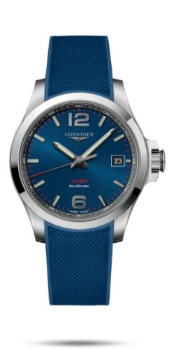 コンクエスト V.H.P. L3.716.4.96.9は、ブルーのさわやかなダイヤルに蓄光塗料を塗布したインデックスが良好な視認性を確保したモデルです。