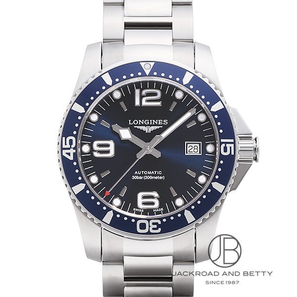 ハイドロ コンクエスト L3.742.4.96.6は、サンレイ仕上げの美しいブルーの文字盤に大きなアラビラ数字のインデックスが映えるドレッシーなダイバーズウォッチです。