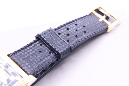角型ムーブメントやスモールセコンド付きの文字盤が大きな特徴。