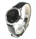 光沢のあるアイボリーの文字盤とブラックの革ベルトの組み合わせで、気品と高級感が感じられるデザインなので、ビジネスはもちろんフォーマルシーンにもおすすめです。