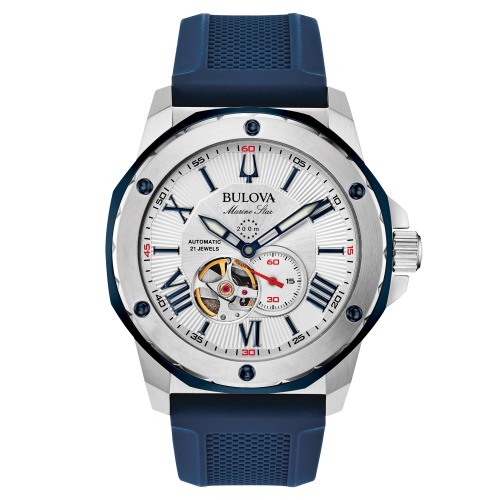 オレンジ色の明るいカラーデザインが特徴的なMarine Star 98A226もブローバのダイバーズウォッチの中で人気の一本です。