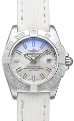 今回ご紹介するブライトリングのギャラクティック32はケースがステンレス、ベルトがレザーのもので、ホワイトで統一された清潔感を感じさせるデザインが魅力。