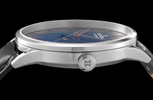 ムーンフェイズの時計はともすると派手になってしまったり、余計な可愛らしさが出たりするのですが、エドックスの80500-3-BUIRはそういったものをすべて削ぎ落とし、シンプルな腕時計になっています。