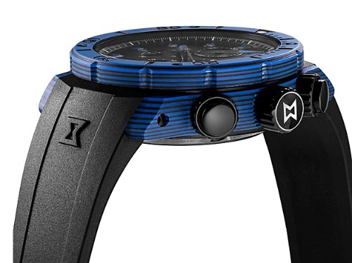 ブルーカーボンがおしゃれな印象を作っていますが、クロノオフショア1はラバーベルトでもあるため装着感も満足しやすくなっています。