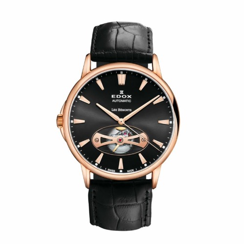 エドックスの腕時計でもピンクゴールドカラーが高級感があると人気があるのがレ・ベモン オープンハート85021-37R-NIRです。