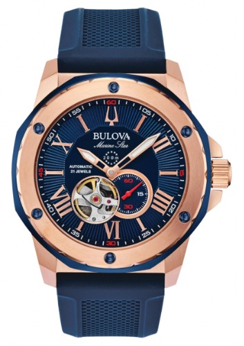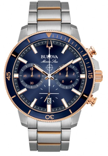 ディープブルーを基礎としてローズゴールを合わせたブローバ98B301 Marine Starは、落ち着いた雰囲気がある腕時計です。