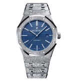 15410BC.GG.1224BC.01 は文字盤をタペストリー模様のブルーダイヤルにしており、とてもシャープな雰囲気に仕上がっています。