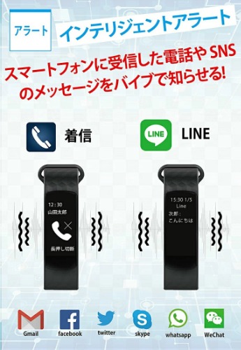 | 機能 | 着信・メール・SMS・SNS・LINE通知・他 |