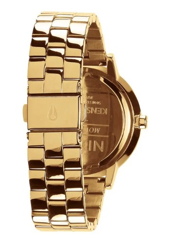 ブラックの文字盤にゴールドのケースとベルトがゴージャスなニクソンのKensingtonは、女性用としてはやや大きめの37mm径が特徴です。
