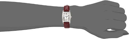 評価:ベルトの革のレッドの色合いが深く、また、針の色が濃い青でとても美しい時計でした。