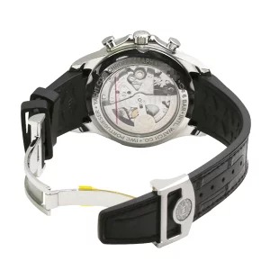 自社開発のキャリバー98295のムーブメントを見せるためシースルーバック仕様になっています。