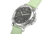 パネライ史上最小の38mm、厚み11.5mmの薄型ケースが大きな特徴で、コランダム製のサファイアガラスが高級感を出しています。