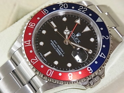 ロレックス「GMTマスターⅡ (Ref.16710)」は、ブラックの文字盤にレッドとブルーのベゼルがオリジナリティーがあって世界中の時計愛好家を魅了し続けているモデルです。