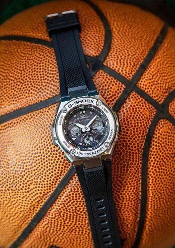 樹脂ベゼルにステンレスケースが組み合わせられたGショックです。