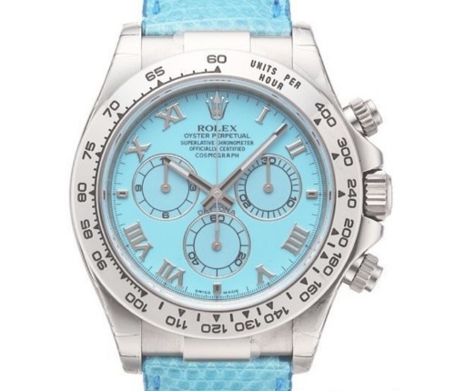 ロレックスのデイトナビーチ「ブルー(Ref.116519)」は、美しいブルーのトルコ石「ターコイズ」を文字盤に使用しており、美しいスカイブルーをイメージさせるデザインなことから多くの男性に人気のあるモデルです。