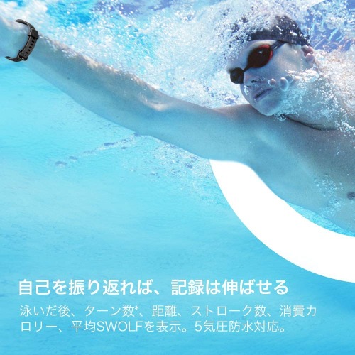 耐水性能が高く、スマートウォッチをつけたまま水泳が可能です。