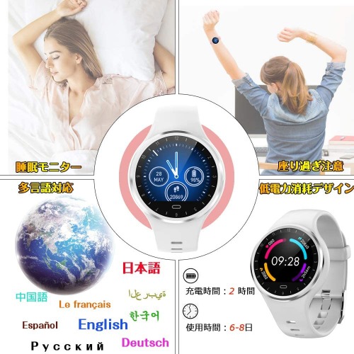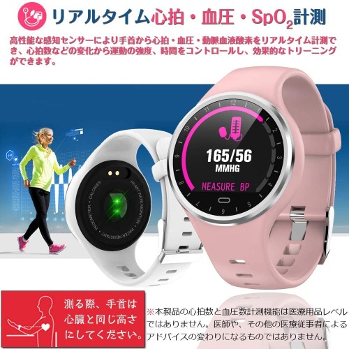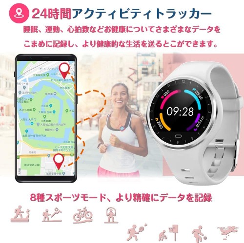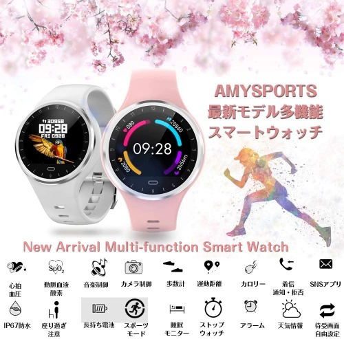 ホワイトとピンクのカラーバリエーションがあり、女性用におすすめのおしゃれなスマートウォッチです。