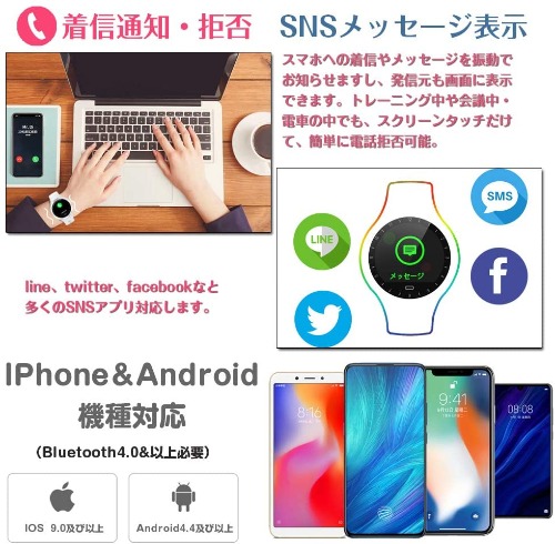 LINEやGmailといったソーシャルメディアの通知を受け取ることが可能であり、iPhoneやandroidのアプリと連携しています。