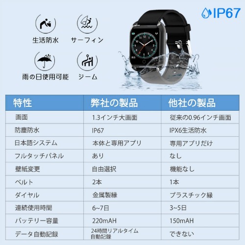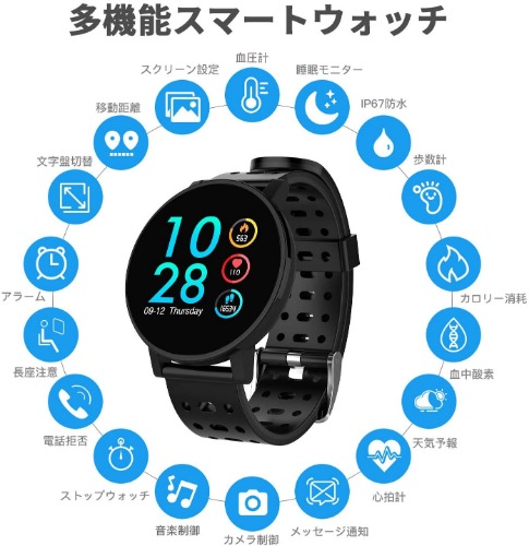 IP68仕様の防水機能を搭載し、雨や汗を気にせずにスポーツやワークアウトが楽しめる、コストパフォーマンスの高いスマートウォッチです。