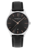 放射線状の美しいブラックダイヤルに、上品なゴールドのインデックスと時針・分針・秒針が見事に調和して6時位置にはデイト表示がスマートに配置されています。