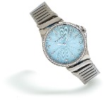 ティファニーブルーでアズラージュ仕上げの文字盤が印象的な時計です。