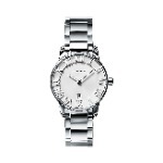 ホワイトダイアルにシルバープードレ仕上げの文字盤が印象的なエレガントな時計です。
