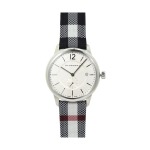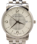 バーバリー BU10002は、シンプルなデザインとバーバリーチェックのベルトが特徴的なクォーツ時計です。