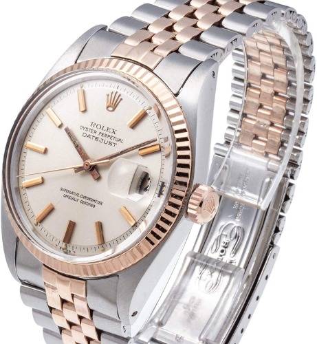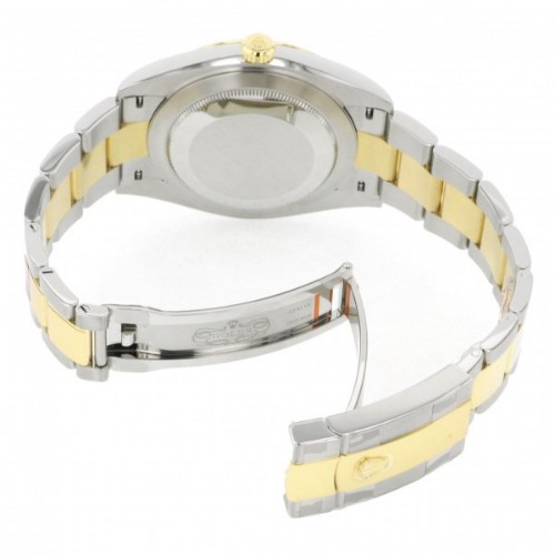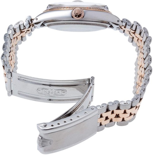 こちらはローズゴールドとオイスタースチールのコンビでフルーテッドベゼルが美しいコントラストをかもし出しています。