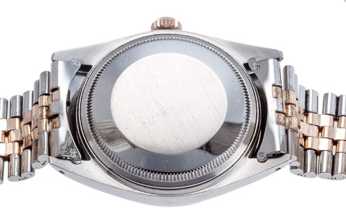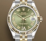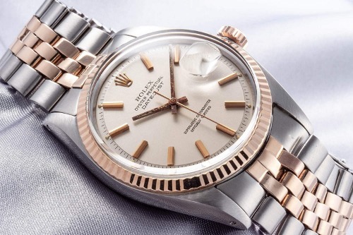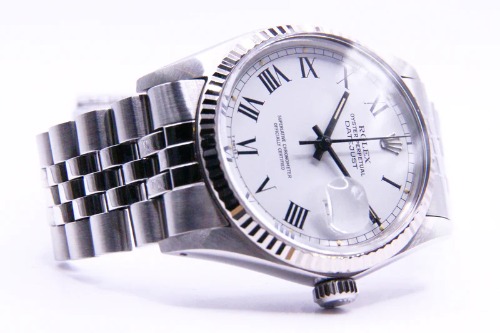 ホワイトゴールドとステンレスの組み合わせは、シンプルなデイトジャストをより際立たせています。