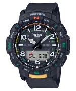 ロッククライミングやフィッシング、トレッキングなど、アクティブなスポーツに対応するプロトレックのアナログ/デジタルコンビネーションモデルが PRW-7000-1AJF です。