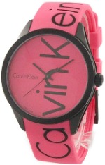 ベルトから文字盤を横切るカルバンクラインのロゴがインパクト抜群の、COLOR(カラー)コレクションのペアウォッチ。
