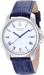 時分針やインデックスのブルーカラーが、ホワイトダイアルに映えます。