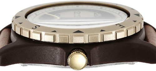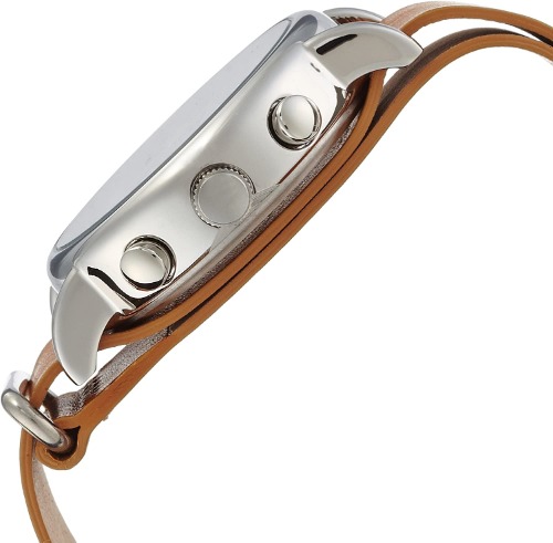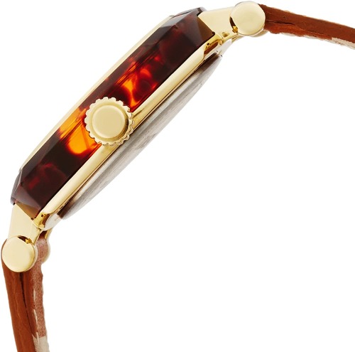 ケースサイズは30mmで、ブラウンのレザーベルト、べっ甲のリングはクラシックな趣きがあり、さまざまな服装に合わせやすいでしょう。
