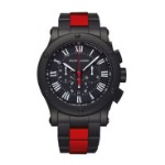クールでかっこいいブラックデザインにレッドカラーがアクセントとして採用され、メリハリのある腕時計となっています。