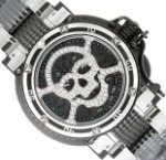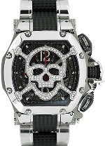 トノー型にふんだんにダイヤモンドが施された骸骨マスクがかっこいいモデルです。