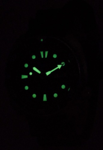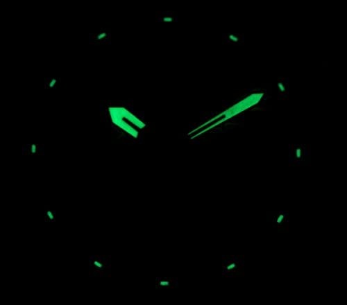 クリーム系のダイヤルにルミブライト加工のインデックスが抜群の視認性を夜間でも約束し、防水も100mと基本性能をしっかり満たした形になりました。