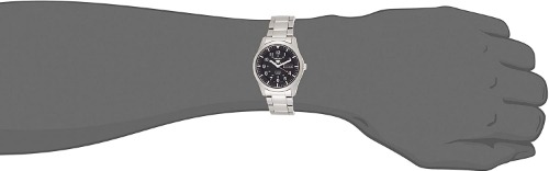 ステンレススチールのケースとベルト、ブラックのダイヤルがスマートな印象で、カジュアルでもフォーマルシーンでも場所を選ばずに使え、自動巻きのムーブメントがしっかりした精度で駆動します。