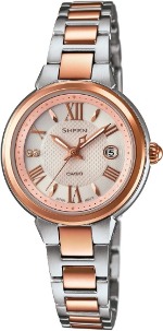 SHE-4516SBZ-9AJFはピンクとシルバーのカラーデザインが美しく、きれいな女性の雰囲気を腕元から作ることができます。
