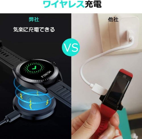 大半のスマートウォッチは、ベルトを抜くとか面倒だと書いているが、コレはそのまま 時計を外したら、盤面裏に 充電場所があり、ワイヤレス充電できる。