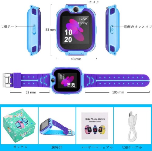 通話、カメラ、ゲーム、目覚まし時計、計算、音楽など、子どもが喜ぶ機能が満載です。3~12歳の男の子・女の子向けに設計されており、プレゼントにも最適です。