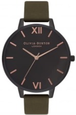 デイジーなどの花をモチーフとしたモデルが多い中、ブラックダイヤルとモスグリーンベルトで異色のデザインです。