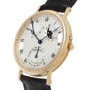 ムーンフェイズ・パワーリザーブ・スモールセコンドが文字盤上にバランスよくはいちされた特徴的なモデルです。