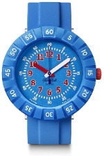 スウォッチのキッズ(子供用)向け腕時計ですが、二つのブルーの色彩の長針・短針により見やすく、極自然に時間を見る事ができる腕時計です。