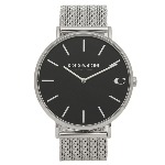 シンプルな文字盤が印象的なメンズ時計で、3時位置の「C」のロゴがさりげなくコーチをアピールしています。