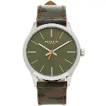 コーチ W1547は、カモフラージュ柄のベルトが特徴的なメンズ時計で、グリーン、ブルー、グレーの3色から選べます。