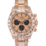 2008年から製造されているロレックス デイトナ Ref.116505は、100m防水に風防はサファイアクリスタル、ケースとベルトのピンクゴールドにインダイヤルの黒が印象的なモデルです。