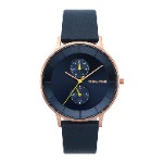 スリムな針やインデックスが上品な印象であり、ゴールドケースやダークブルーのダイヤルに落ち着いた大人のムードが漂います。