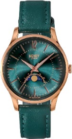 ヘンリーロンドン(HENRY LONDON)の人気モデル第2位「HL34-LS-0382」は、シックな緑に月の満ち欠けがわかるムーンフェイズを搭載したモデルです。