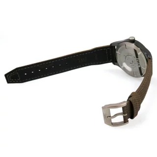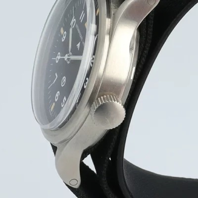 IWCマークシリーズは初代のマークXIが、イギリス軍に装備品として納入の腕時計で外装はシンプルなものになっており、ベルトもレザーや金属ではなく布製になっています。