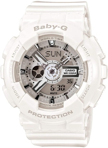 BA-110GA-7A1は10気圧防水仕様のBABY-Gで、1/100秒を測れるストップウォッチ機能付きです。